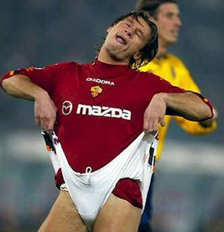 3) Estaria o fênomeno treinando uma nova forma de fazer gols: "de bundinha" ?